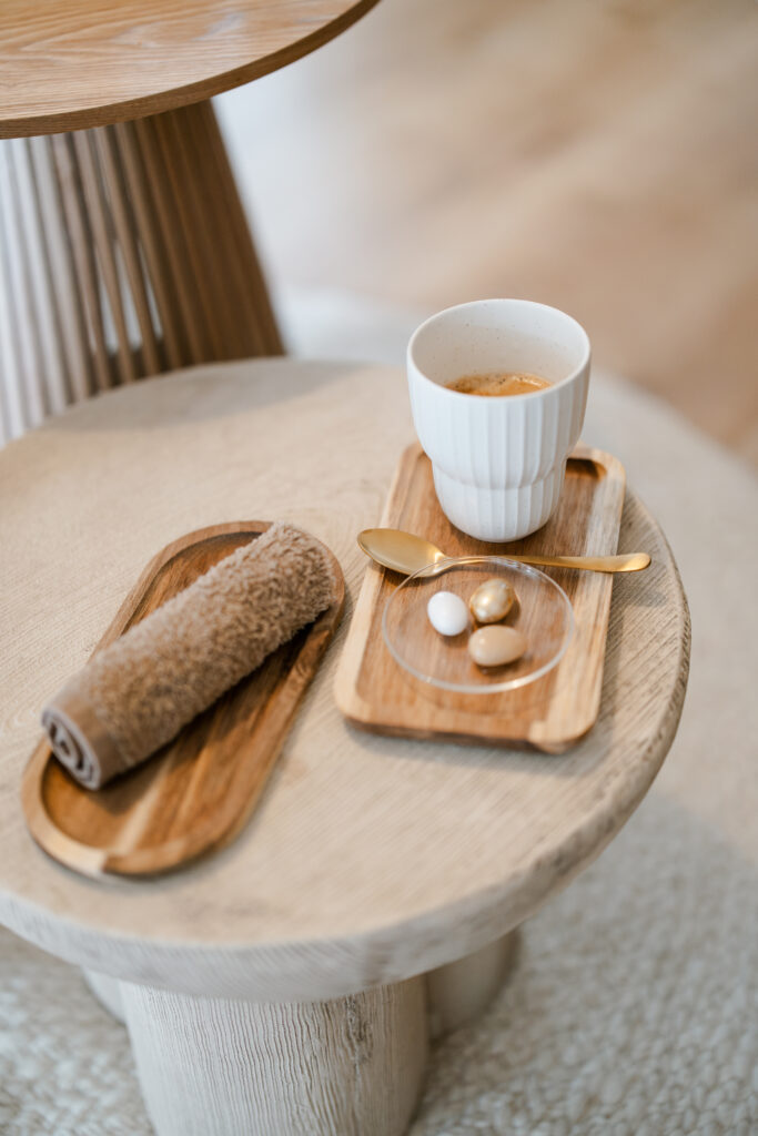 Je krijgt een warme handdoek, een drankje en een lekkere bonbon.